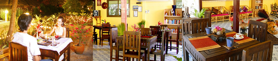 Our cafe has fresh sea food caught by the local fishing fleet, local specialities such as the famous Moo Chamuang (pork casserole with leaves from the Chamuang tree), healthy cuisine made with local herbs, freshly picked fruit from the local orchards, seasonal delicacies, barbecues and Isaan and Western dishes. Upon request we will provide meals to suit meet special dietary needs.